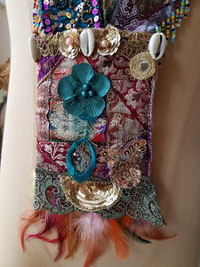 Indian Sari Collar necklace with a little sac for your phone or money.